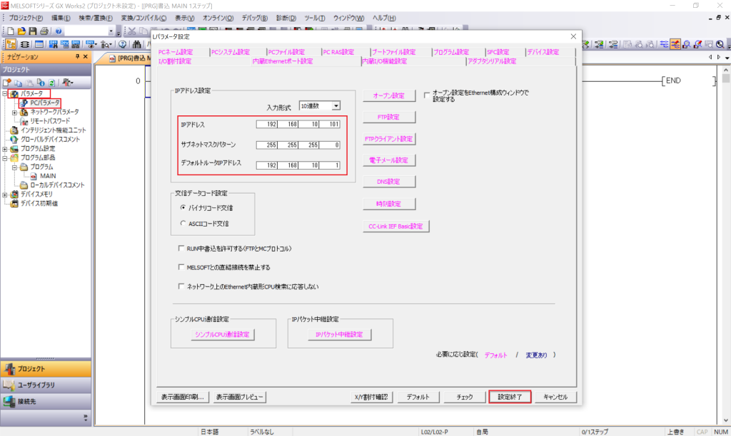 これで PLC の設定は完了です。
