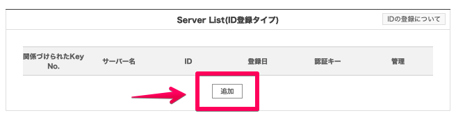 3. Server (ID登録タイプ)の登録と認証キーの取得