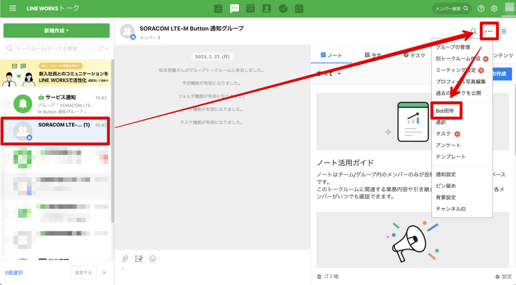 SORACOM IoT レシピ:LINE Worksに通知が届く、呼び出しシステム