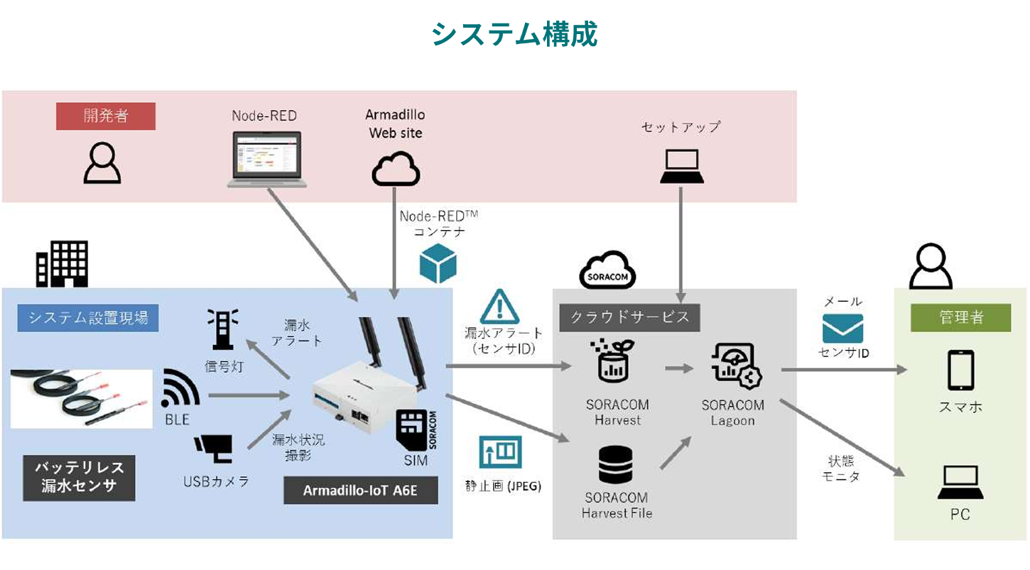 Armadillo-IoTゲートウェイとバッテリレス漏水センサによる漏水検知システム